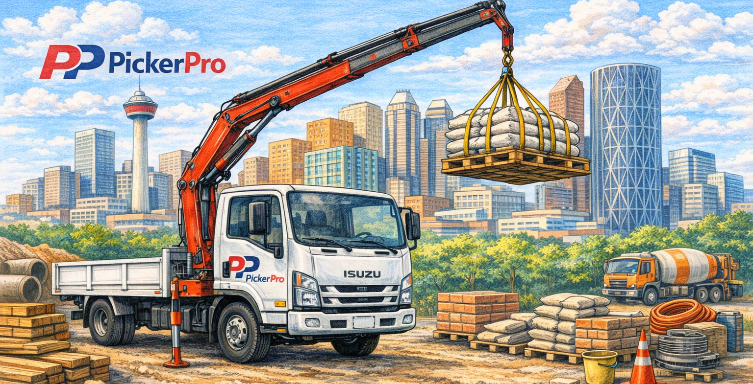 Compact crane truck with professional gear.
